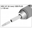 Adapter für SDS-plus-Bohrer mit HEX-Ende zur Möglichkeit der Verwendung von Bits. Die Länge des Adap