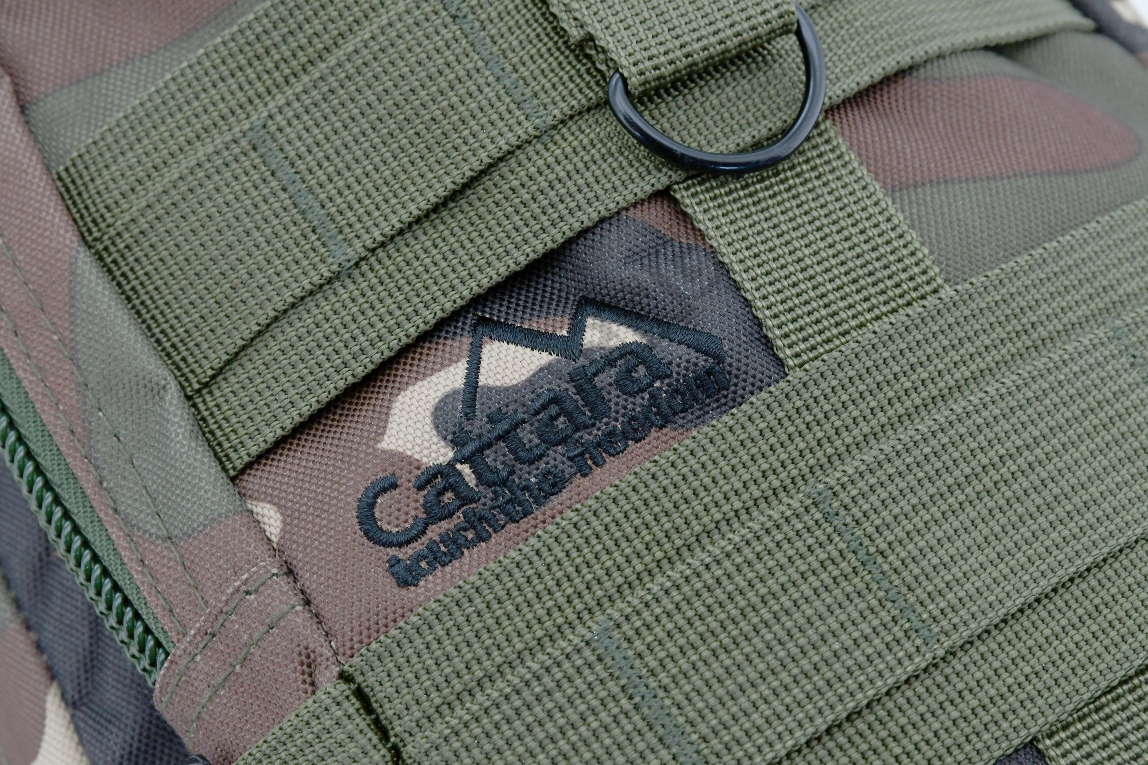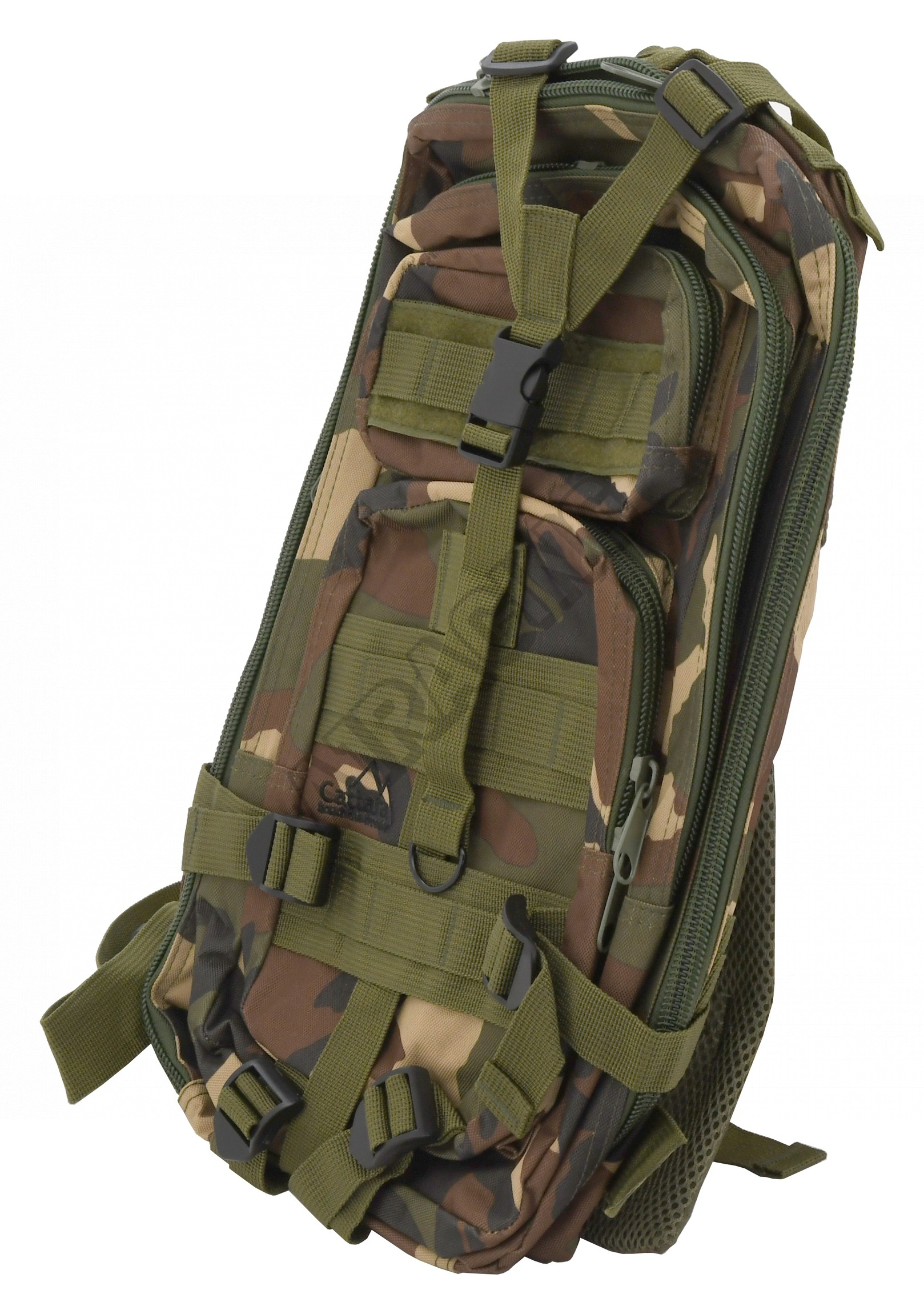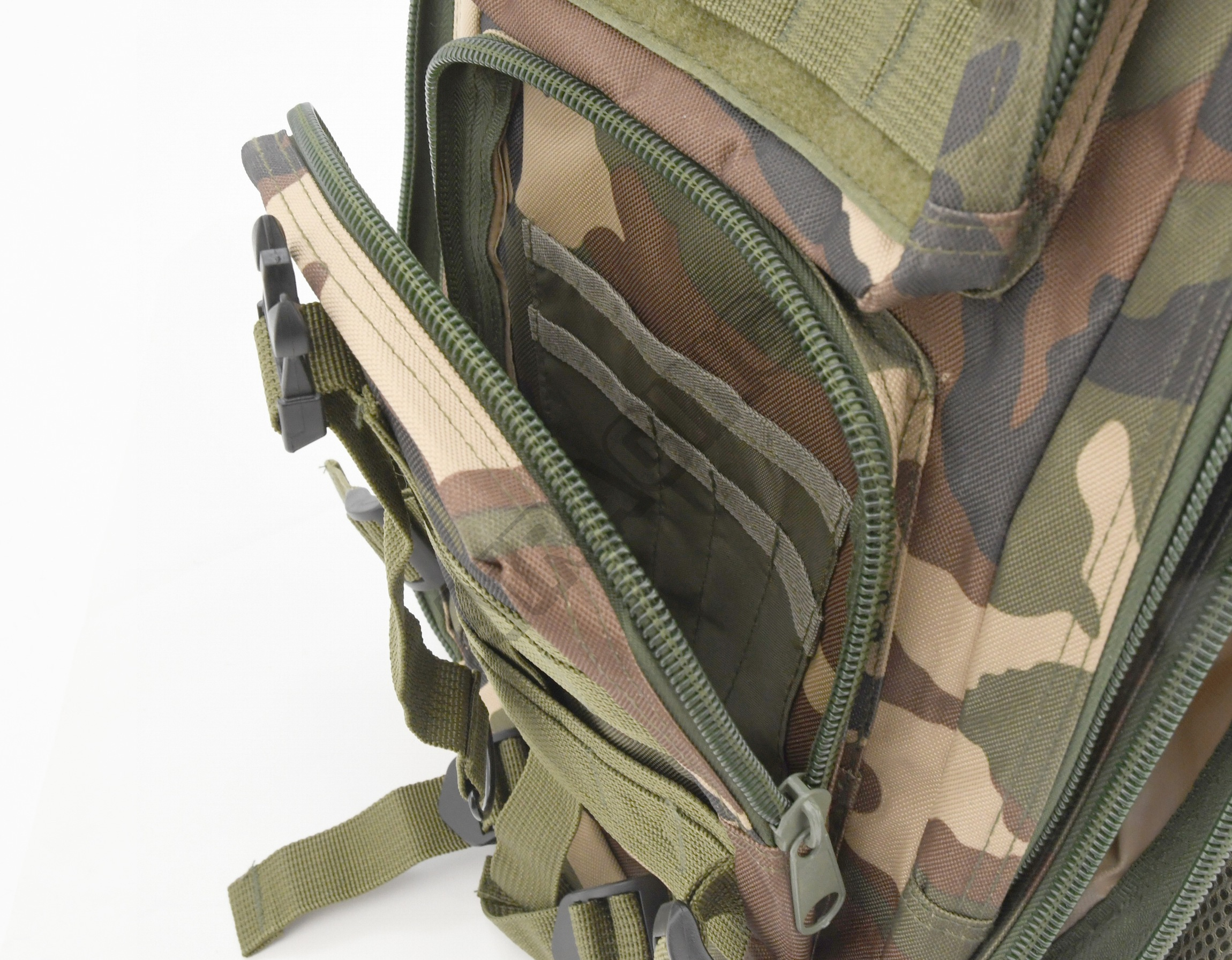 Zur Befestigung weiterer Ausrüstung ist er vorne und an den Seiten mit einem Molle-System ausgestattet. Die Taschen sind mit einem stabilen Zwei-Wege-Reißverschluss ausgestattet. Die Innentaschen und die Netztasche sind mit Schlaufen zum sicheren Tragen kleiner Gegenstände ergänzt. Eine der Innentaschen ist mit einem klassischen Reißverschluss ausgestattet und die hintere belüftete Tasche ist mit einem Klettverschluss ausgestattet.