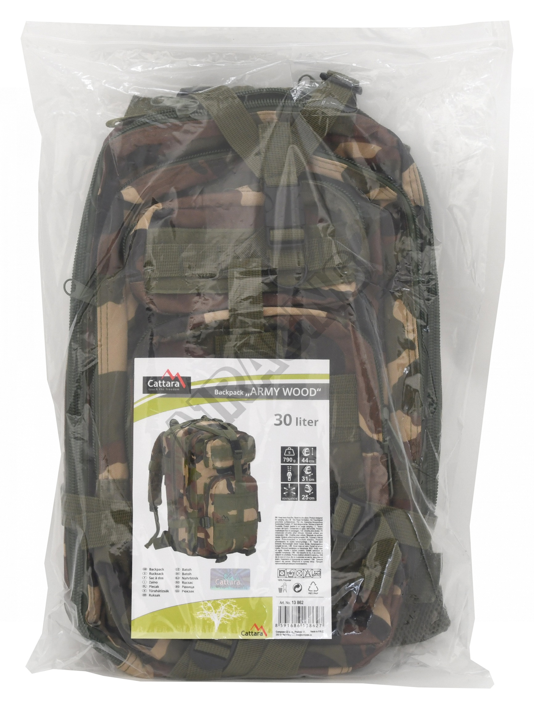 Hergestellt aus 100 % Polyester mit einer wasserdichten PVC-Schicht auf der Innenseite. Der Rucksack hat die Maße 31 x 44 x 25 cm und bietet geräumigen Platz für bis zu 30 Liter Gegenstände.