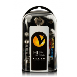Universelle Kunststoffbox mit VECTA-Ersatzlampen inkl. Sicherung für Fahrzeuge mit H1-Glühlampe.