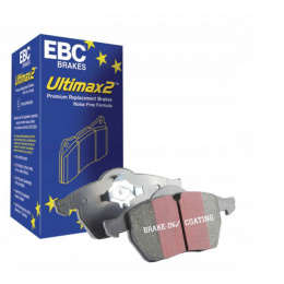 Klocki hamulcowe samochodowe ULTIMAX2, przeznaczone są do samochodów osobowych, w tym modeli typu Van i Suv (4x4). Ten typ klocków EBC jest wykonany z najwyższej jakości materiałów ciernych, spełniających wymogi norm bezpieczeństwa hamulców ECE R90. Są bardzo dobrym zamiennikiem dla klocków fabrycznych, w bardzo przystępnej cenie. Klocki produkowane są z podkładkami antywibracyjnymi, ukośnymi ścięciami, szczeliną dylatacyjną oraz unikalną powłoką brake-in, zapewniają niezwykle krótki czas docierania. Zaletą klocków EBC jest ich zdolność do eliminacji szarpania przy hamowaniu - już po pierwszych 450-600 km przebiegu praktycznie kompensują szarpnięcia o umiarkowanym natężeniu. Okładziny cierne z materiału EBC pozwalają obniżyć zużycie tarcz hamulcowych o 50% w porównaniu z bardziej ściernymi materiałami półmetalicznymi. W przypadku oryginalnych części zamiennych, dość powszechna jest konieczność wymiany tarcz hamulcowych przy każdej wymianie klocków, natomiast w przypadku produktów EBC tarcza hamulcowa może przetrwać dwa komplety klocków, co daje znaczące oszczędności. I wcale nie oznacza to, że klocki zużywają się szybciej.