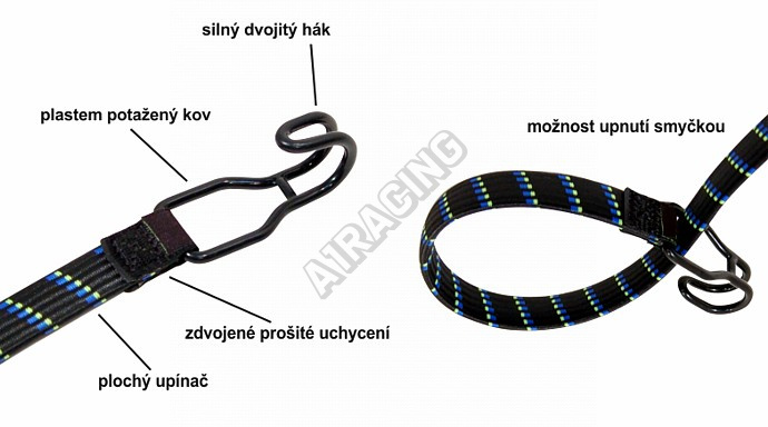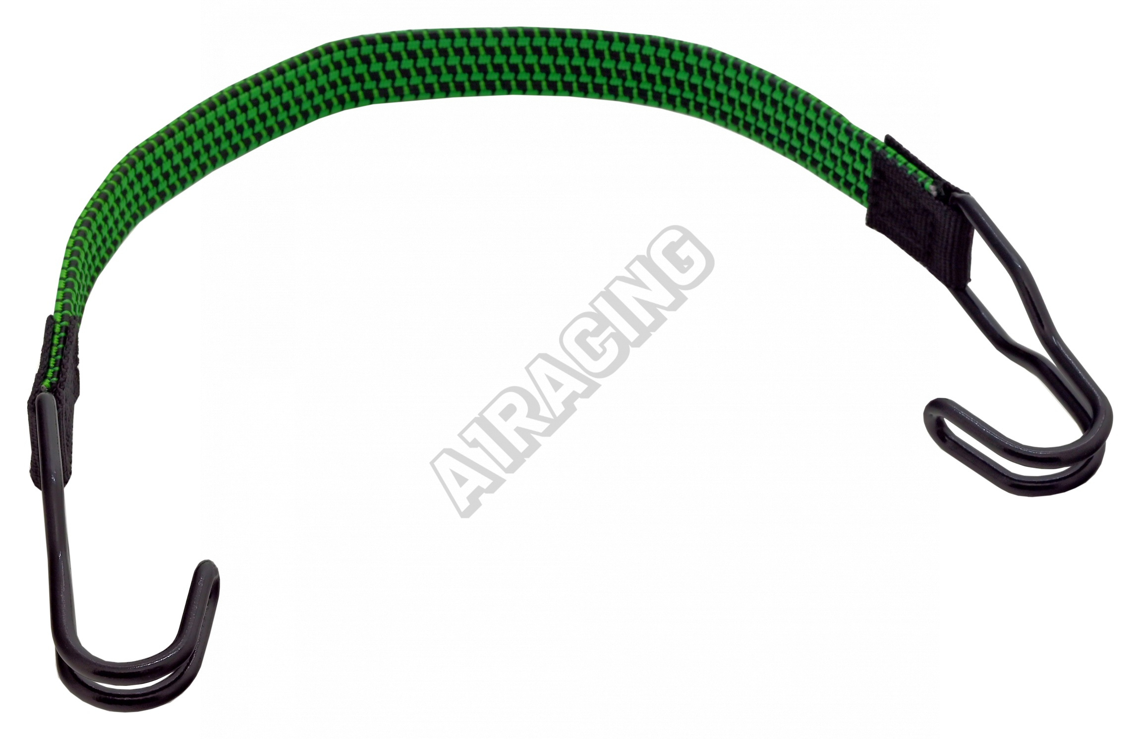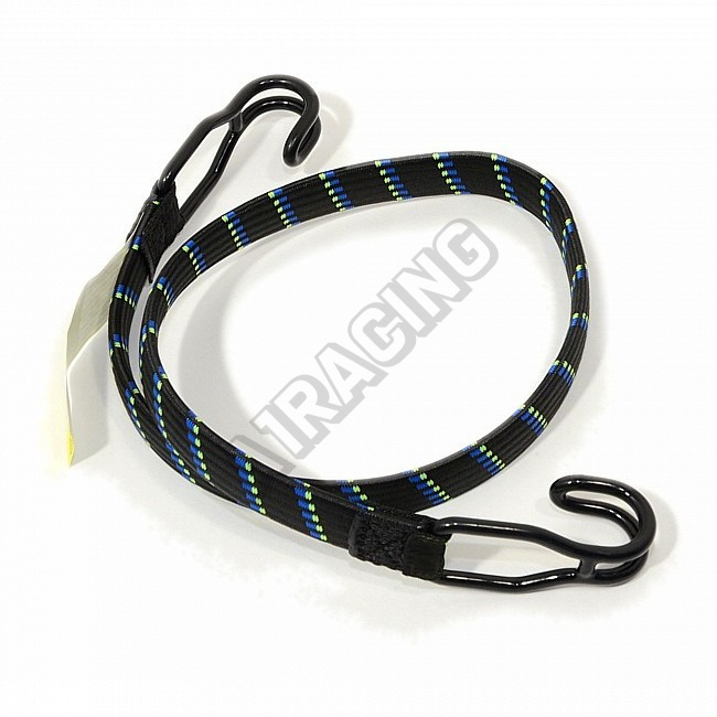 Elastischer Spanner mit flachem Querschnitt, der mit zwei Metallhaken endet.