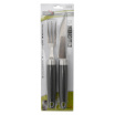 Das Set besteht aus 3 spitzen Gabeln mit den Maßen 24 x 2,2 x 2 cm und einem gezahnten Steakmesser mit den Maßen 25,5 x 2,5 x 2 cm.