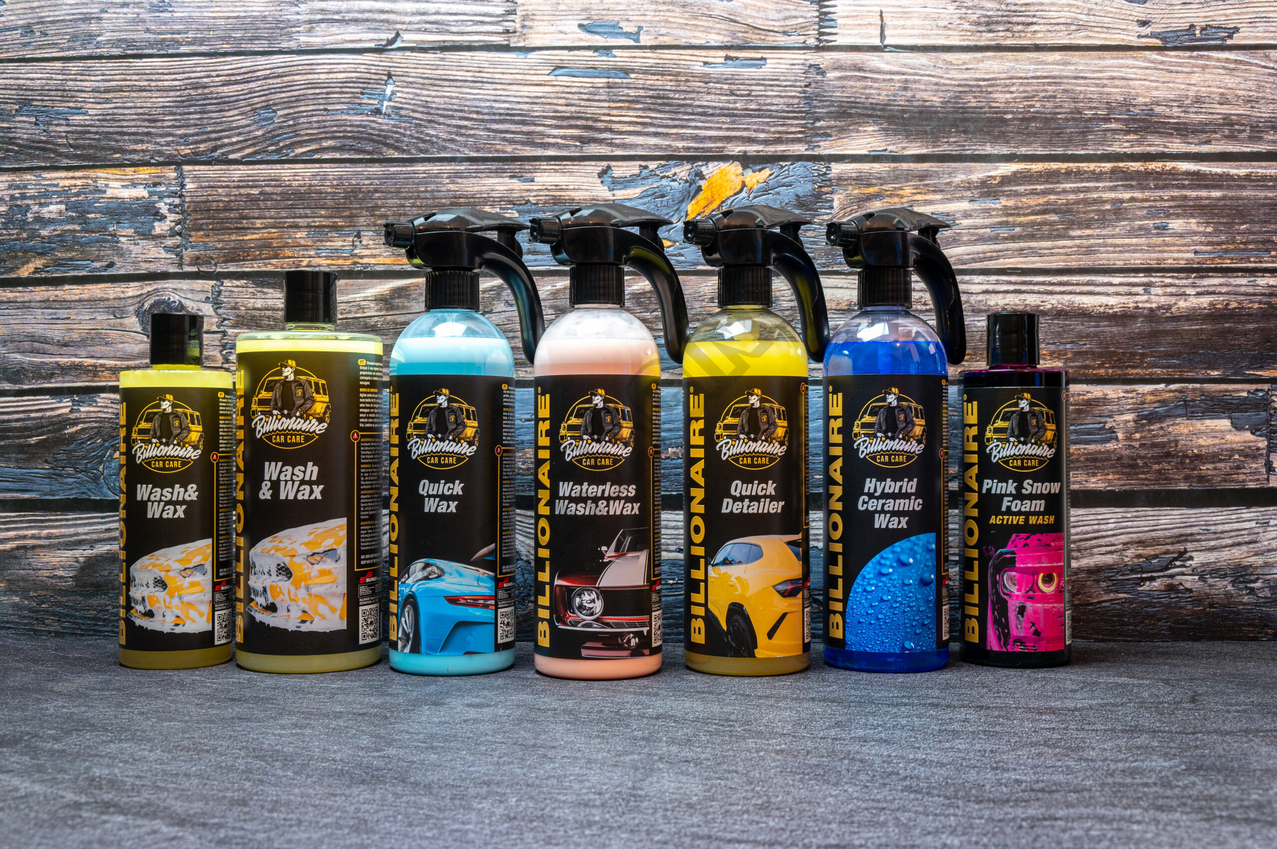 Im unteren Teil finden Sie eine ganze Reihe von Bllionaire-Produkten für die Pflege Ihres Autos, deren Hauptvorteil neben der Qualität dieser Autokosmetik auch ein großes Paket zum günstigen Preis ist.