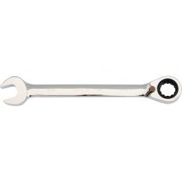 Maulschlüssel mit Zwölfkantprofil, ausgestattet mit einer Ratsche mit feiner 72-Zahn-Wirkung und einem Links-/Rechts-Umschalter.