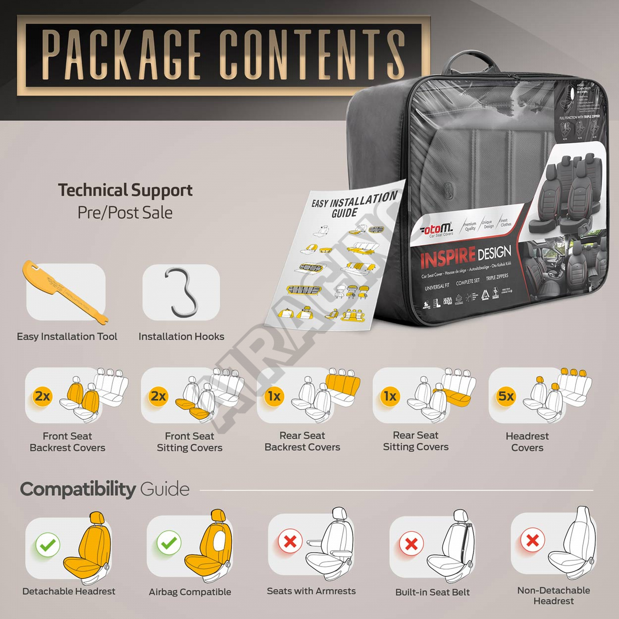 Komplettsatz Autositzbezüge OTOM INSPIRE SCHWARZ ECO-LEDER 3-REISSVERSCHLUSS