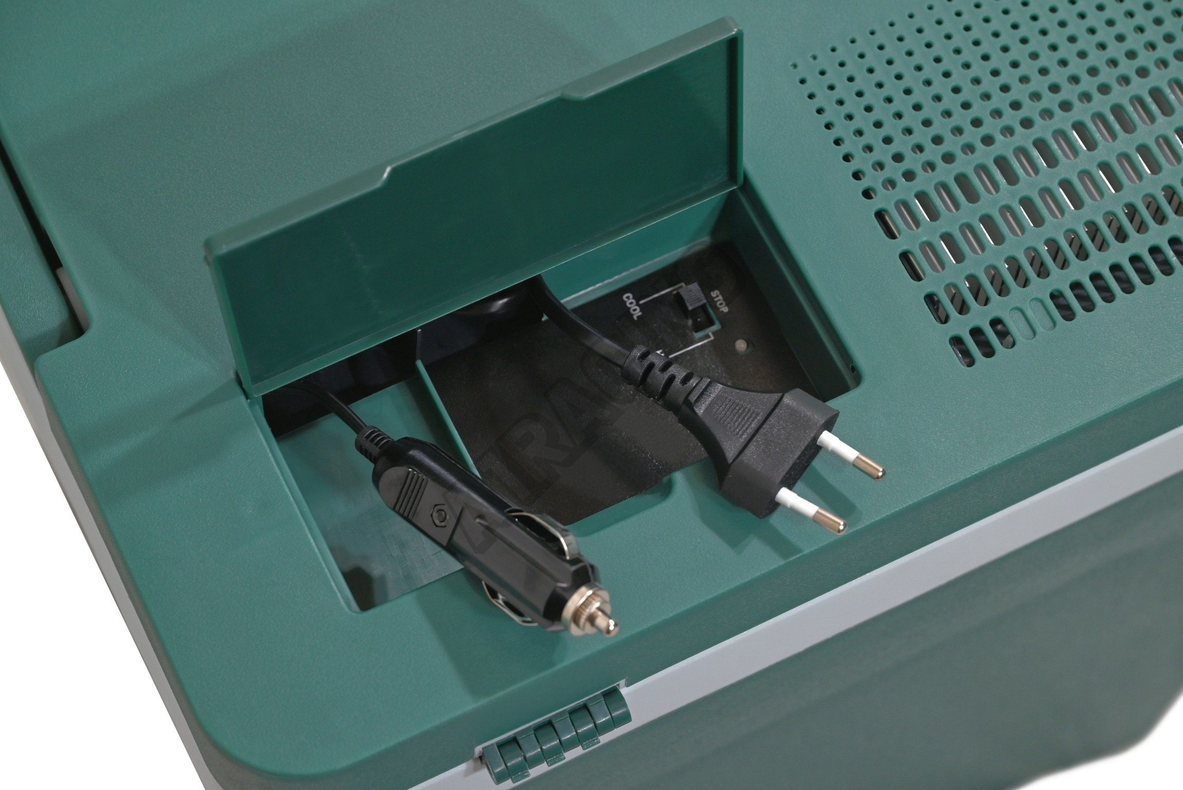 Die Netzkabel sind in einem praktischen verschließbaren Fach direkt im Deckel untergebracht, sodass sie immer griffbereit sind und gleichzeitig nirgendwo im Weg sind.Die Kühlbox arbeitet auf thermoelektrischer Basis mit einem Lüftersystem zur Kühlung, das keine FCKW enthält. Ermöglicht es, innerhalb der Box eine Temperatur zu erreichen, die um 15°C niedriger ist als die Umgebungstemperatur (bei 25°C).