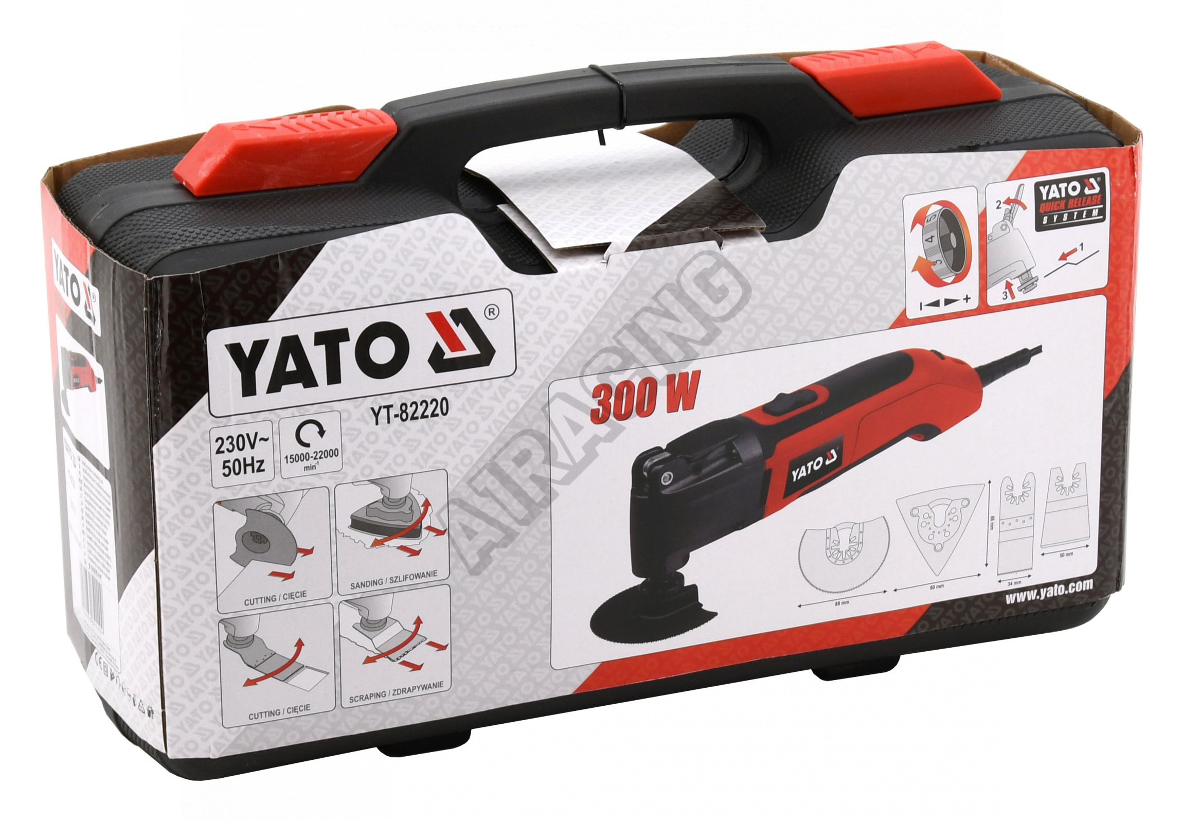 Das multifunktionale (oszillierende) Werkzeug mit einer Leistung von 300 W ermöglicht Ihnen die Ausführung selbst anspruchsvollster Arbeitsaufgaben. Es ist zum Schneiden und Trennen von Holzwerkstoffen, Kunststoff, Gipskarton und weichen Metallen (Kupfer, Aluminium) sowie zum Raspeln, Schleifen und Schaben kleinerer Flächen usw. bestimmt.