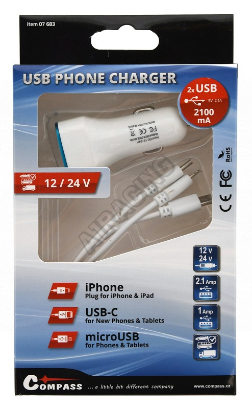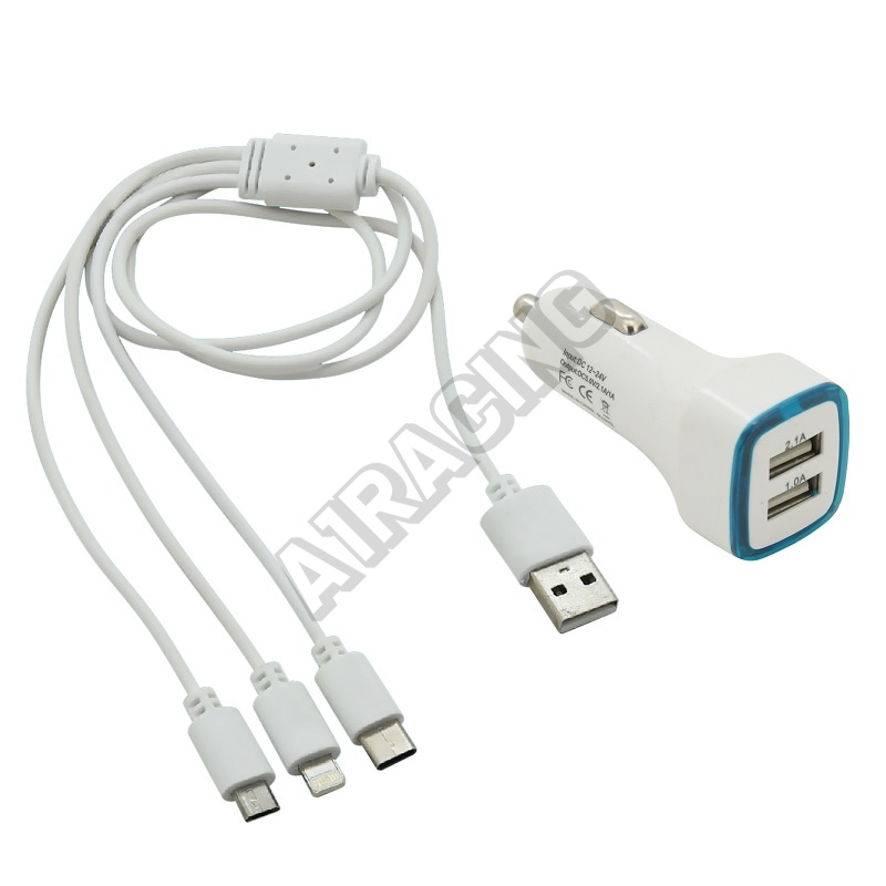 USB-3-in-1-Telefonladegerät (Micro-USB, iPhone, USB C) Ladegerät, USB-Stecker für 12V- oder 24V-Zig