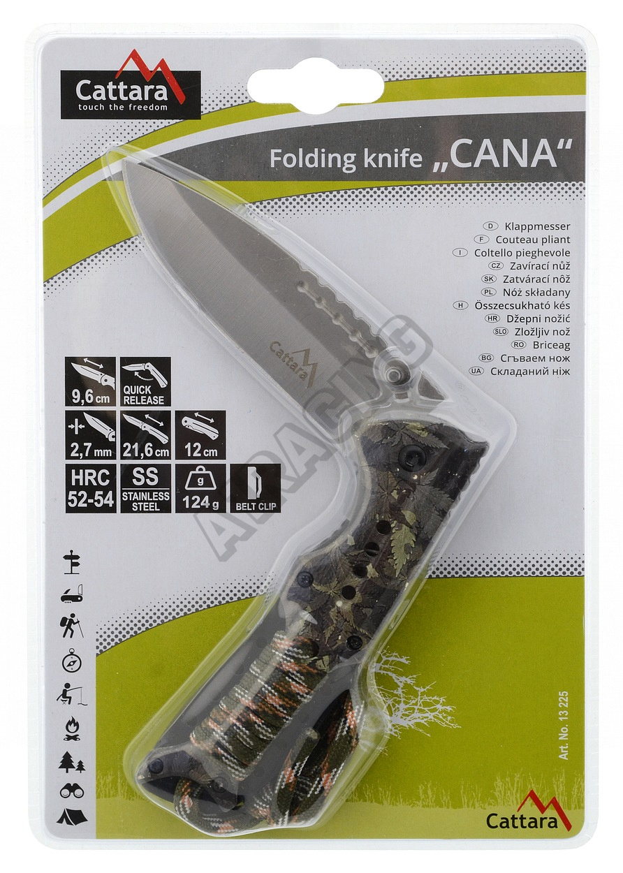 Leichtes Messer mit Hanfblatt-Print und Waldtarnung. Das Cana-Messer ist ein nützlicher Helfer beim Camping, Angeln und anderen Outdoor-Einsätzen.