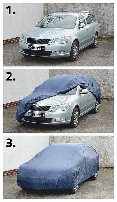 Atmungsaktive Plane für das ganze Auto. Verhindert leichte Feuchtigkeit und Frost, geeignet gegen Autoverschmutzung. Schützt die Fahrzeugkarosserie vor Witterungseinflüssen und UV-Strahlung. Einfache Universalbefestigung mit eingenähtem Gummi im Unterteil. Verpackt in einer praktischen, mit Reißverschluss verschließbaren Verpackung, in der sich das Laken nach Gebrauch einfach zusammenfalten und verstauen lässt.
