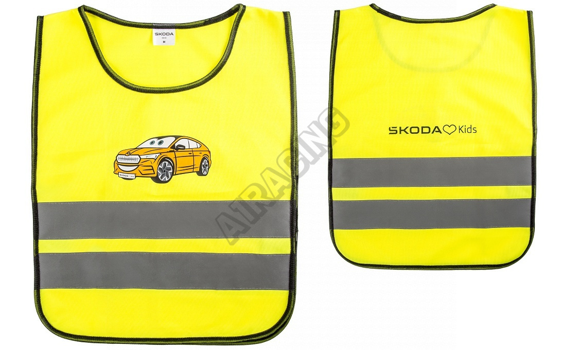 Die Weste mit dem Motiv des Autos Enyaq ist nicht nur funktional, sondern auch attraktiv für Kinder, was die Wahrscheinlichkeit erhöht, dass sie sie gerne tragen werden.