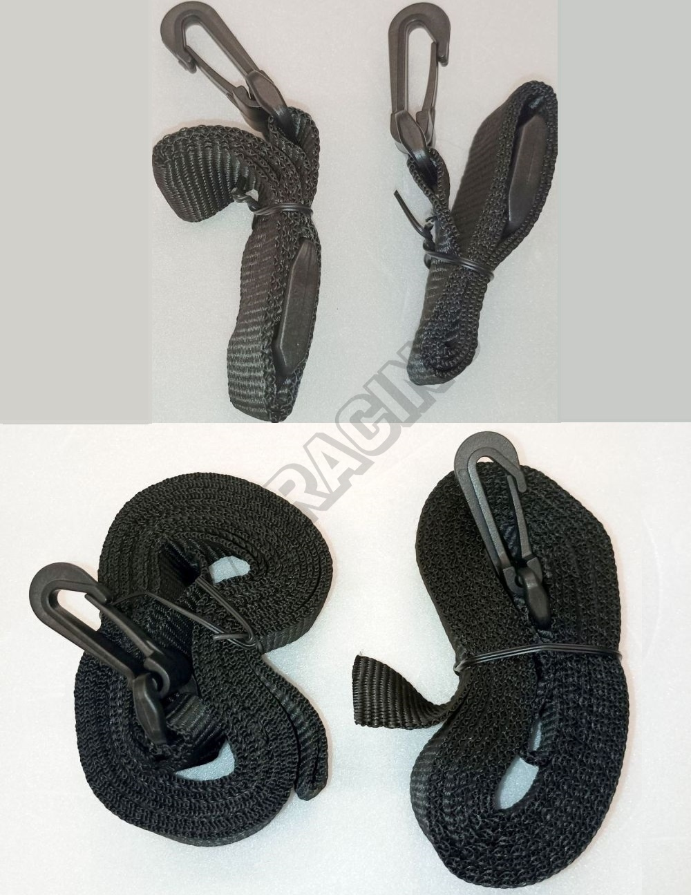 In der Fotogalerie sehen Sie die unteren und oberen Befestigungsgurte mit Haken und Spanngurten.