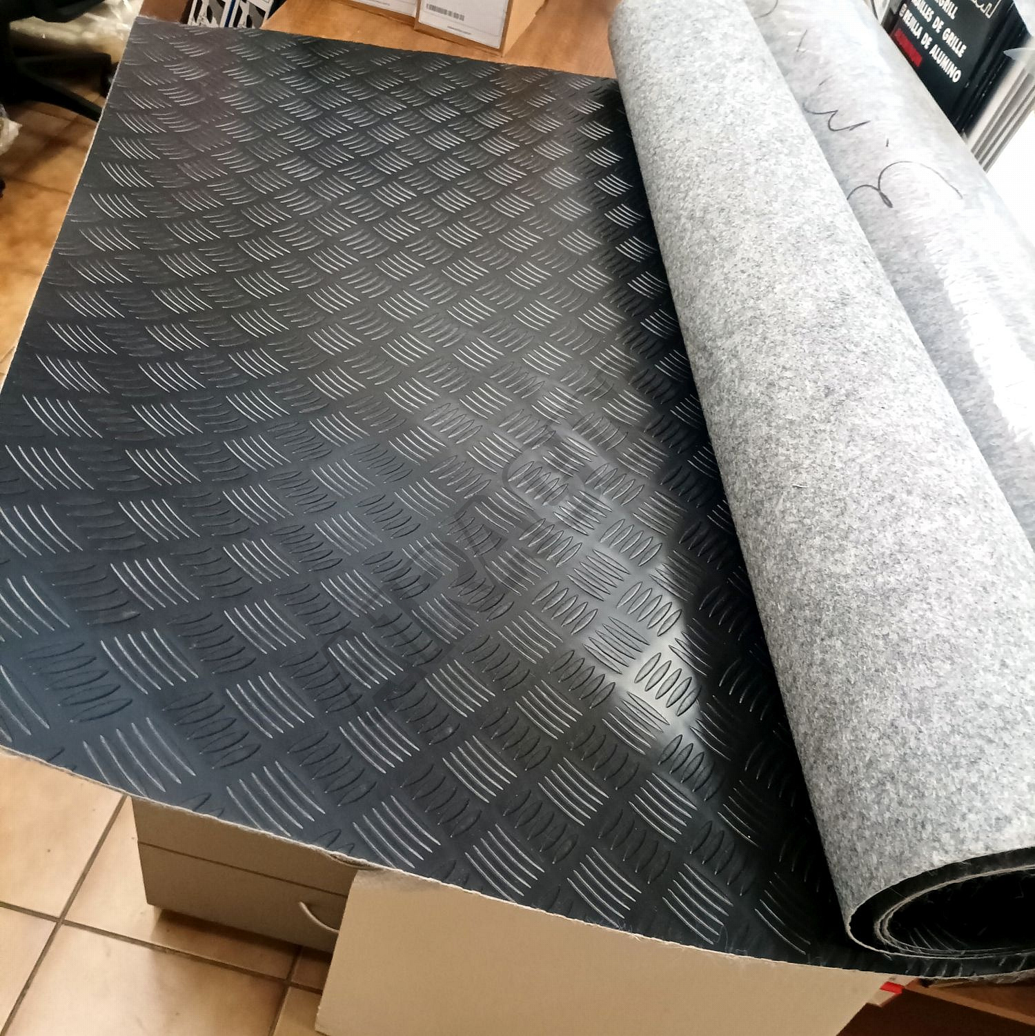 Rutschfeste, schwarze Gummimatte mit Schachbrettmuster, 200 x 100 cm