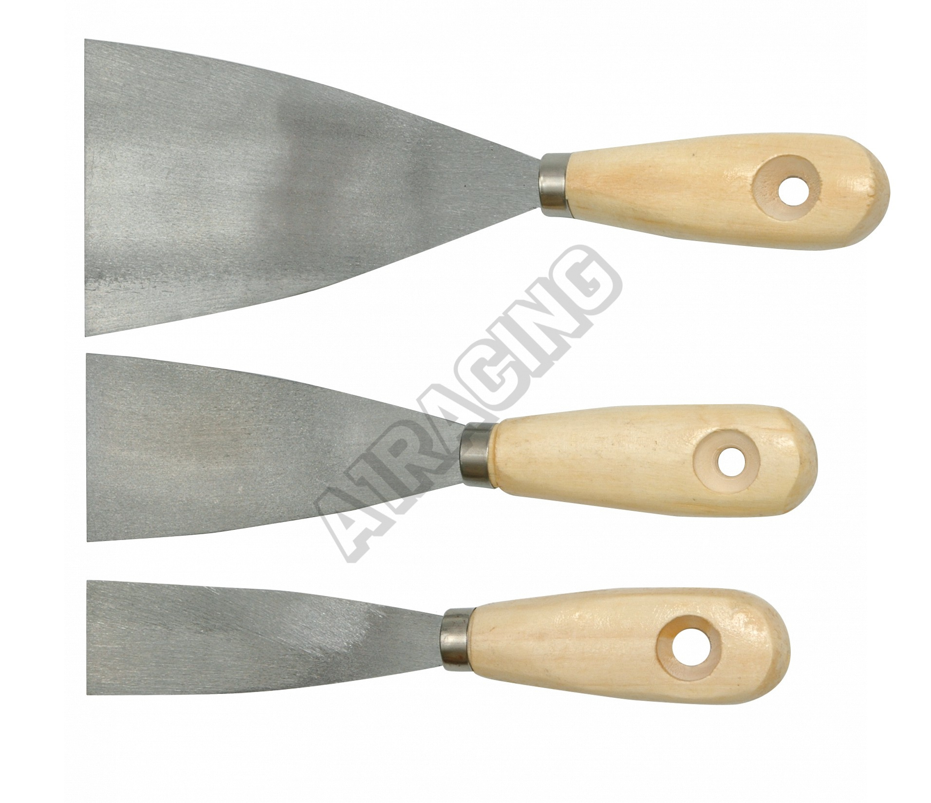 Spachtelset (30 / 50 / 80 mm) aus Edelstahl mit Holzgriff.