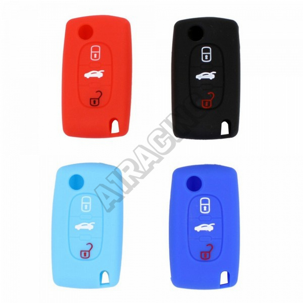 Silikonový obal na klíč 3 tlačítkový pro vozy Peugeot a Citroen. Silikonový kryt chrání autoklíč před poškozením, opotřebováním a nečekaným pádum klíče na zem. Jednoduše tak lze i barevně odlišit firemní vozy.