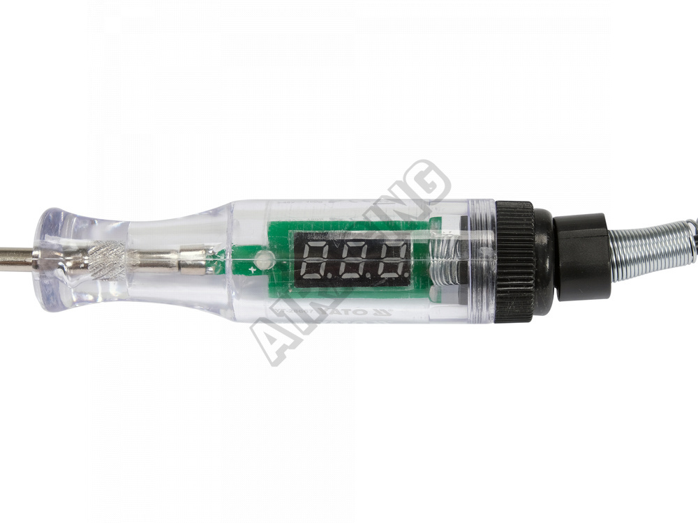 Ein Tester, der sich für die Reparatur von Autos eignet. Messbereich 3-48V. LED-Signalisierung und Display zur Anzeige der gemessenen Werte, Kabellänge 270 cm.