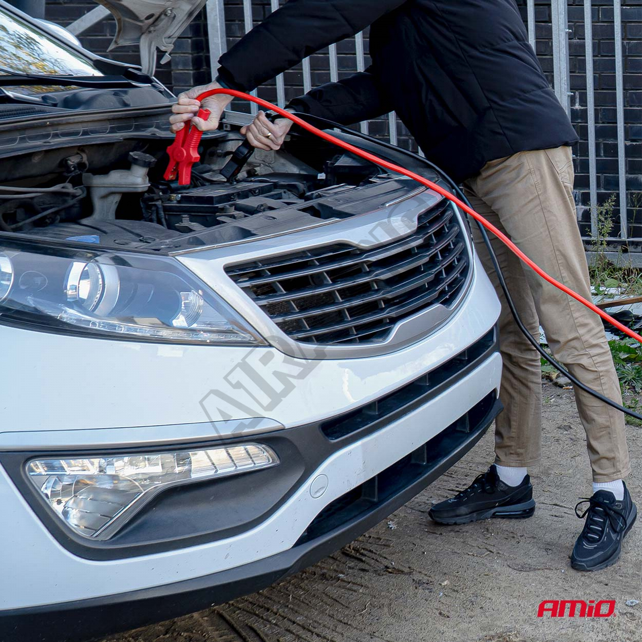 Professionelle Starthilfekabel mit einem maximalen Strom von 480A und einer Länge von 4,5 Metern, geeignet für den Notstart von Fahrzeugen mit 12V- und 24V-Batterien. Das Produkt verfügt über TüV/GS-Zertifikate, die die Sicherheit der Nutzung und die hohe Verarbeitungsqualität garantieren. Die Kabel bestehen aus einem flexiblen, kupferbeschichteten Leiter mit einem Querschnitt von 54 mm² und einem Durchmesser von 13,5 mm, was minimalen Widerstand und effektive Stromleitung auch unter schwierigen Bedingungen gewährleistet. Solide, isolierte Klemmen mit starken Federn gewährleisten eine sichere und stabile Verbindung mit den Batteriepolen. Die Länge von 4,5 m ermöglicht das bequeme Anschließen von Fahrzeugen auch bei begrenztem Platz oder im Gelände. Das Set wird in einem praktischen Etui geliefert, das die Aufbewahrung und den Transport erleichtert. Anwendung: PKW, Lieferwagen, Geländewagen, Wohnmobile, landwirtschaftliche Maschinen Ideal für Werkstätten, mobile Services und Fahrzeugflotten Technische Daten: Startstrom: 480A Kabellänge: 4,5 m Betriebsspannung: 12/24V Kabelquerschnitt: 54 mm² Kabeldurchmesser: 13,5 mm Zertifikat: TüV/GS Produktcode: AMiO-04595 Vorteile: Sehr hohe Startleistung auch bei großen Batterien Dicke Kabelquerschnitte sorgen für minimale Energieverluste Flexible, kältebeständige Isolierung Starke, vollständig isolierte Klemmen Sicher und langlebig im Gebrauch Im Set enthalten ist eine praktische Aufbewahrungstasche