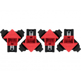 Ein Satz von vier starken, gefederten Winkelklemmen, die zum Klemmen der zu verbindenden Elemente in einem Winkel von 90 Grad bestimmt sind.