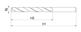 Spiralbohrer aus legiertem Schnellarbeitsstahl nach DIN 338 - Kobaltgehalt 5 % - Rechtsspirale Typ N - Bohrerspitzenwinkel 135° - Kreuzschliff nach DIN 1412C - Durchmessertoleranz h 8 - Stahlbohrer aus Vollmaterial geschliffen