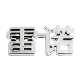 Selbstklebendes Kunststoffemblem der 3D-Logo-Serie mit Chromoberfläche. Motiv einer europäischen Automarke in chinesischen Schriftzeichen geschrieben. China-Buchstabenserie.